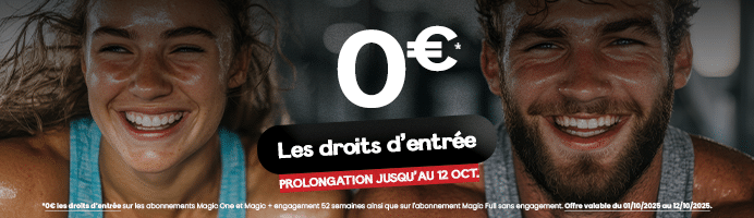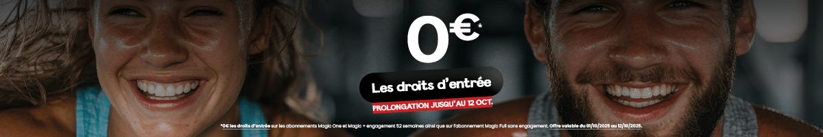 ** Du 25 août au 30 septembre → Offre de rentrée : 0€ de frais d’entrée sur toutes les formules (hors abonnement jeune).